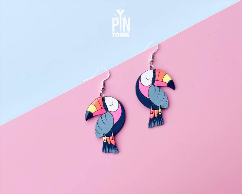 Jeder Ohrring ist sorgfältig aus Holz gefertigt und zeigt komplizierte Details. Egal, ob Sie sich zu Halloween verkleiden oder Ihrem Strand-Outfit einen Hauch von Farbe verleihen, unsere lustigen Tukan-Vogel-Ohrringe sind ein Statement.