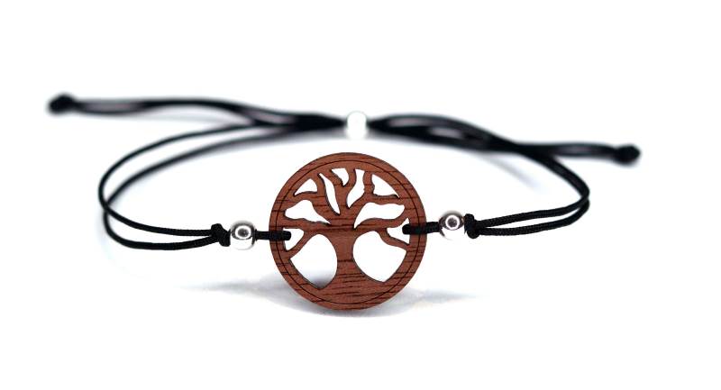 Baum des Lebens - Armband aus Nussholz mit schwarzem Bändchen